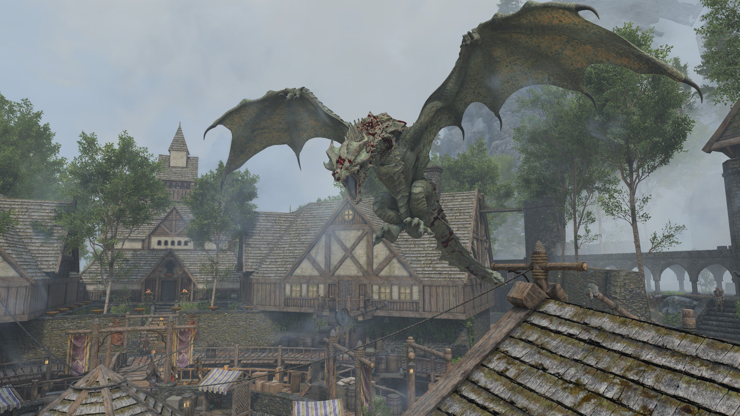 Во время сдачи квеста прилетел дракон в Рифтен. Теперь у города есть дополнительное украшение.
