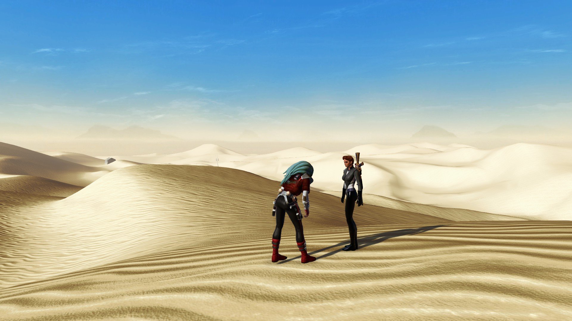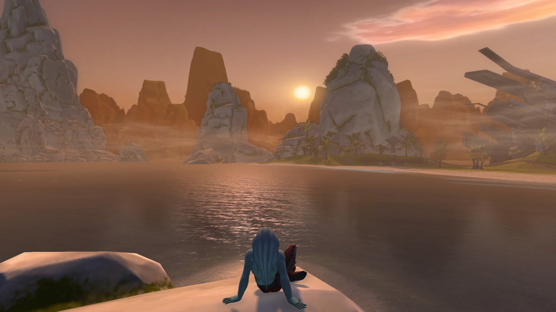 Tranta 220 8 часов назад (изменено) Ещё один персонаж, не прошедший дальше основной сюжетки. Контрабандист-наутоланин, мечтавший бороздить не только моря родной планеты, но и космические просторы Далёкой-далёкой галактики. У него всё просто, без особых затей: родился, вырос, покинул родину, нажил репутацию, стал ценным союзником Республики, стал паладином Дома Органа на Альдераане, завёл подругу в лице Акаави... В целом он не гонялся за выгодой, скорее уж за приключениями, но своего не упустит. Сейчас планирует прикупить недвижимость на Нар-Шаддаа. Учитывая, что с хаттами он в достаточно хороших отношениях, эта мечта тоже осуществима. Показать контент Начинающий капитан Таким юный летун и искатель удачи появился в одном из центральных миров Республики. Простая одежда, в которой можно сразу и окунуться в водичку, бо не жалко, высохнет Hide В пути к славе Таким стал, когда залез в легаси банк разделил с Ришей богатства Нока Драйена и поднаторел в интригах подпольного мира, став любимцем хаттов. Кроваво-красный оттенок куртки, гранаты и пара пистолетов на поясе - прямо капитан Угроза Будучи представителем водоплавающей расы, этот персонаж определённо ненавидит Татуин, поэтому как только вместе с Ришей отыскали криминального лорда, поскорее оттуда смотались. А дальше как в одном небезызвестном художественном фильме "- Что будете декларировать?" "- На Татуин - ни ногой!" "Хорошая попытка, пропагандисты Республики, но вам меня во флот не затащить" Немного экшена Отпуск на любимом Риши. Всё-таки Нар-Шаддаа - это больше про работу и связи, не считая кантин, игорных зон и девчонок. Риши - это пиратская бухта, то есть водичка и тропики. Что ещё нужно наутоланину? Жаль, что владелец стронгхолда так и не выдал ключ((( Hide Капер Республики Наконец, роль республиканского капера тоже потребовала некой смены образа: чёрные тона (как некие ассоциации с пиратами) с золотыми вставками и полосами на штанах (как ассоциации с сокровищами и богатством). Пояс через всю куртку, кожаный ремень с золотой же бляхой, кичливые наплечники... Пушки тоже новенькие, естественно, с нелегальными модификациями. Что касается мировоззрения - не то чтобы работа на Республику доставляла удовольствие и мотивировалась бы некими патриотическими чувствами, просто с Империей как-то не сложилось Спасать котят от мороза - немного не то, о чём мечтал наш герой, но иногда приходится делать и такое. Только посмотрите на этих пушистиков! Трудовые контрабандистские будни Доставил беженцам их вещички прямо на корме спидера Hide Паладин Дома Органа И ещё один имидж, связанный персонально с альдераанскими приключениями. После помощи Дому Органа простой паренёк с двумя стволами стал не только желанным гостем в поместье знаменитой дворянской семьи, но и её почётным хранителем. В новых условиях требовался новый образ под стать местным благородным лордам и леди, так появилось некое сочетание атрибутики знатного рыцаря и лихого дуэлянта. Естественно, в бело-голубых тонах Органа, под цвет наутоланской коже; на поясе и нарукавниках - символ всё тех же Органа. Когда самозваный король Бурис Ульго сдавался в плен, перед его глазами мелькали именно эти цвета и символы Новая "тачка" в яркой кричащей расцветке с одной стороны смотрится слегка аляповато, а с другой - чего они ждали от капера с сомнительными связями, 