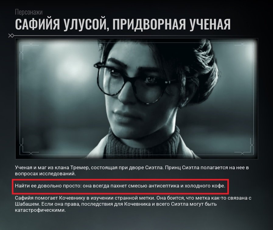 Фидельма из Килдэра 1 122 1 час назад (изменено) 1 час назад, illeaillas сказал: Показать контент А мы с Фаиром пришли к выводу, что свежие воспоминания об убийствах, это все ложные воспоминания Hide Показать контент Показать контент Частично - точно ложные. В убийстве той же Пандоры Фабиан просыпается позже, чем показывают часы в Макоме (а время тут назад идти не может). Но то, что Дейл был убит и, похоже, в своей квартире - факт, остались материальные следы в виде ленты у двери, арматура. Пандора, емнип, упоминается в одной из газет - буду проверять, все равно сейчас второй раз иду из-за сломавшего первый ран бага. "Лимону" точно чистили память, так что Мисти, похоже, действительно бродит по улицам Сиэтла. Но я не думаю, что сам Фабиан - убийца-подражатель. Ок, Пандора могла напомнить ему об убийстве Марлы: место, красивая девушка, закрытая задняя дверь (хотя для Фаира дверь из подсобки открыта). Даже можно потереотизировать, что Пандора могла быть куклой Лу (типаж относительно ее), как Марла была гулем Розалинд), а Дейл через Уильяма - об Айзеке. Но байкер-то к чему, как и Равенна? Имхо, убивала ячейка саббат с относительно той же идеей, что была за оригинальными убийствами у Лу и Кэмпбелла. Цель - дестабилизация обстановки, запугать Кэмпбелла и Лу. Бенни изготовил кресты (навыки у него есть), убил байкера, возможно и Дейла тоже, Равенну убила сама Изабелла. Пандору могли убить Бенни, Изабелла и сама Сафия. Hide Изменено 1 час назад пользователем Фидельма из Килдэра 1 Цитата Поделиться сообщением Ссылка на сообщение Поделиться на другие сайты